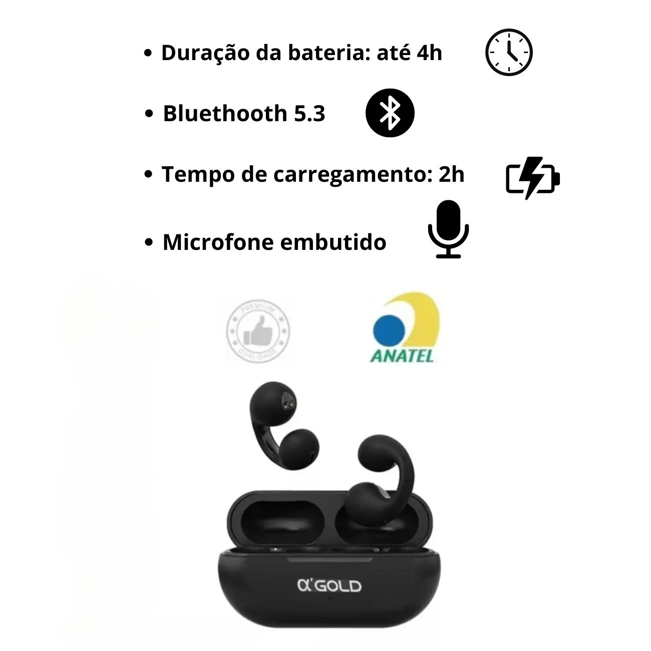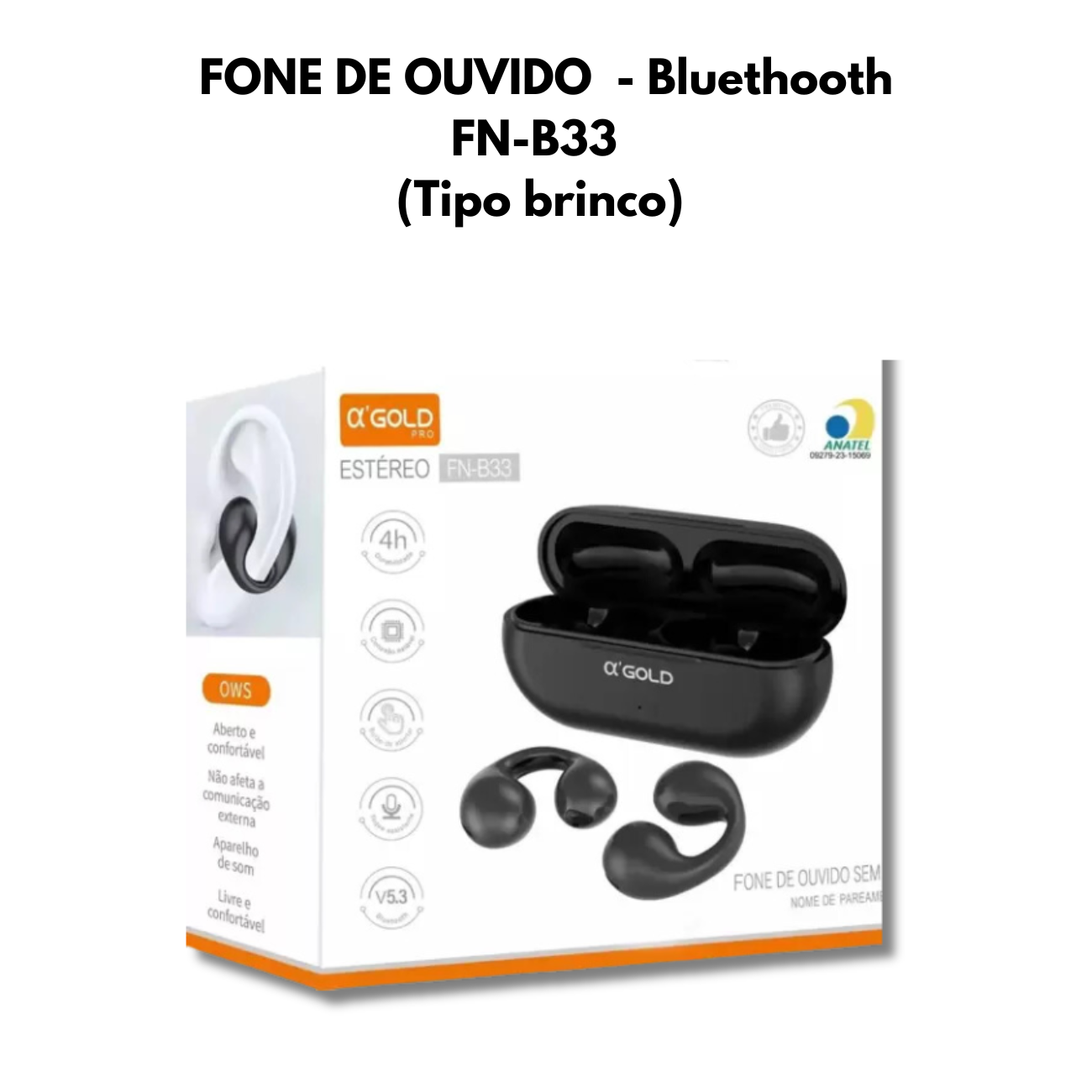 O Fone de Ouvido Condução Óssea Bluetooth Sem Fio FN-B33 - AGOLD-PRO é a escolha perfeita para quem busca uma experiência de áudio inovadora, confortável e segura. Ideal para o dia a dia e atividades ao ar livre!