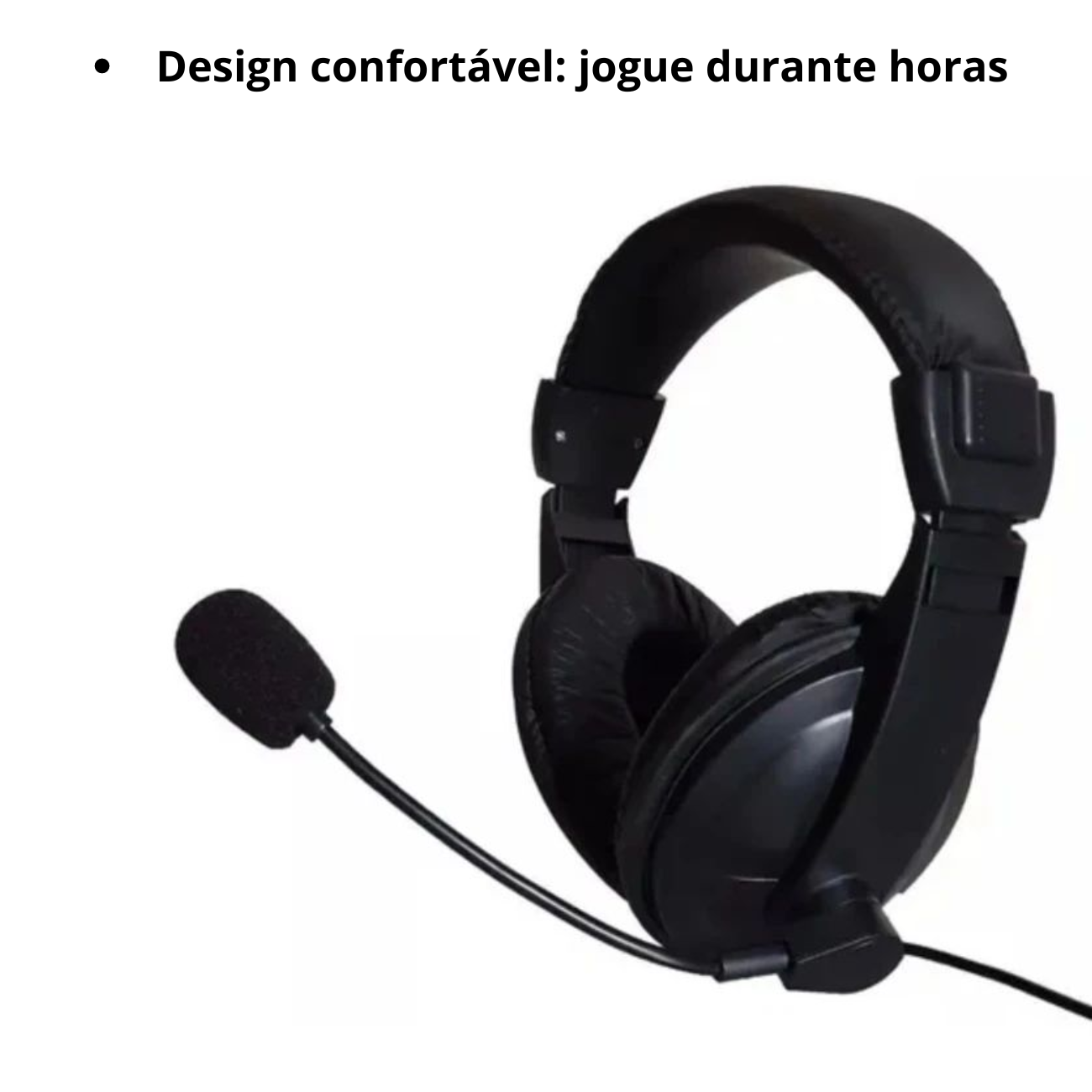 Conforto Prolongado: Almofadas auriculares macias e faixa de cabeça ajustável garantem conforto durante longas sessões de jogo.