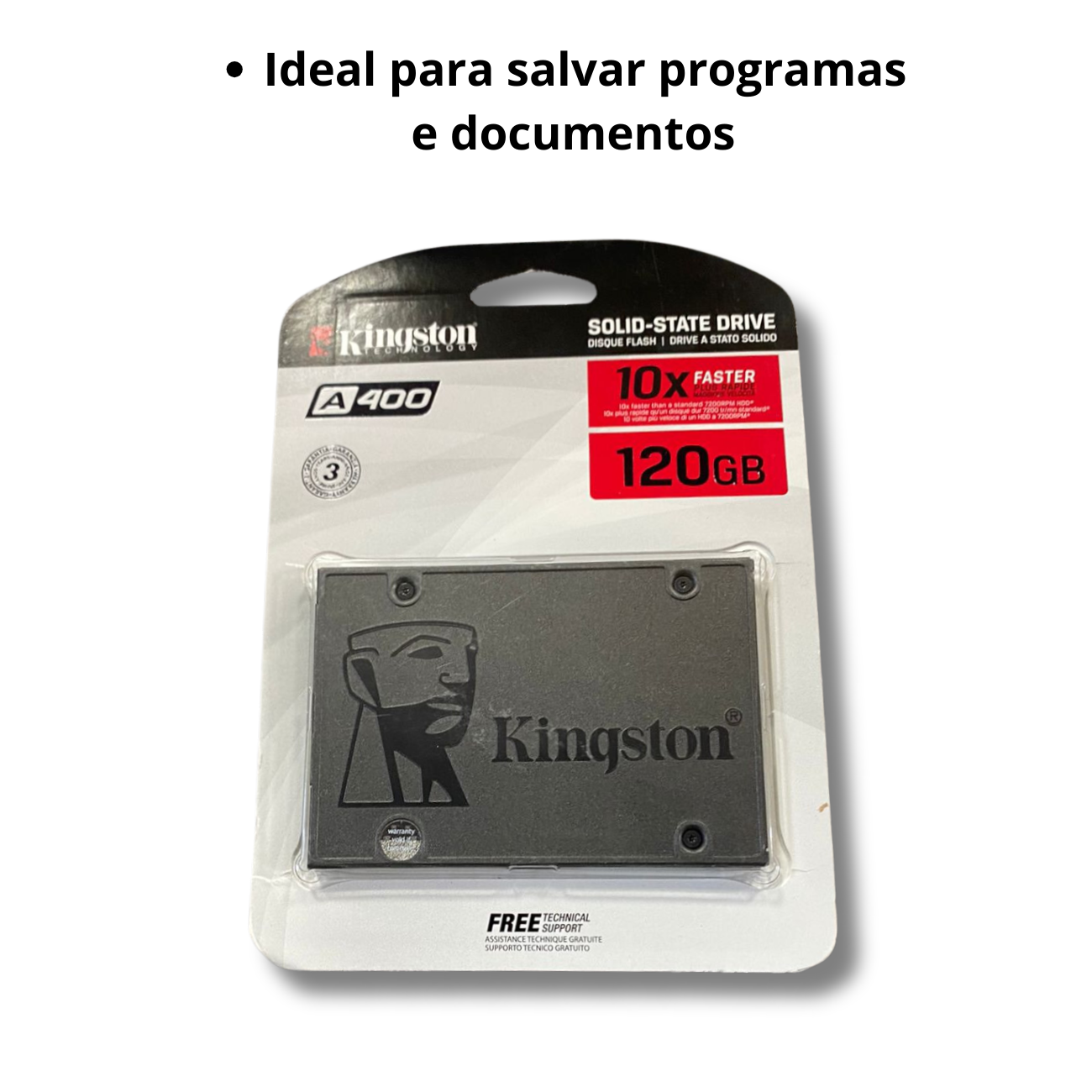 Não perca mais tempo lidando com um computador lento e desajeitado. Adquira agora o HD SSD Kingston 120GB A400 SATA 3 e experimente a diferença que uma tecnologia de armazenamento de alto desempenho pode fazer. Acelere sua produtividade, melhore sua experiência de jogo e desfrute de uma computação mais eficiente em todos os aspectos!