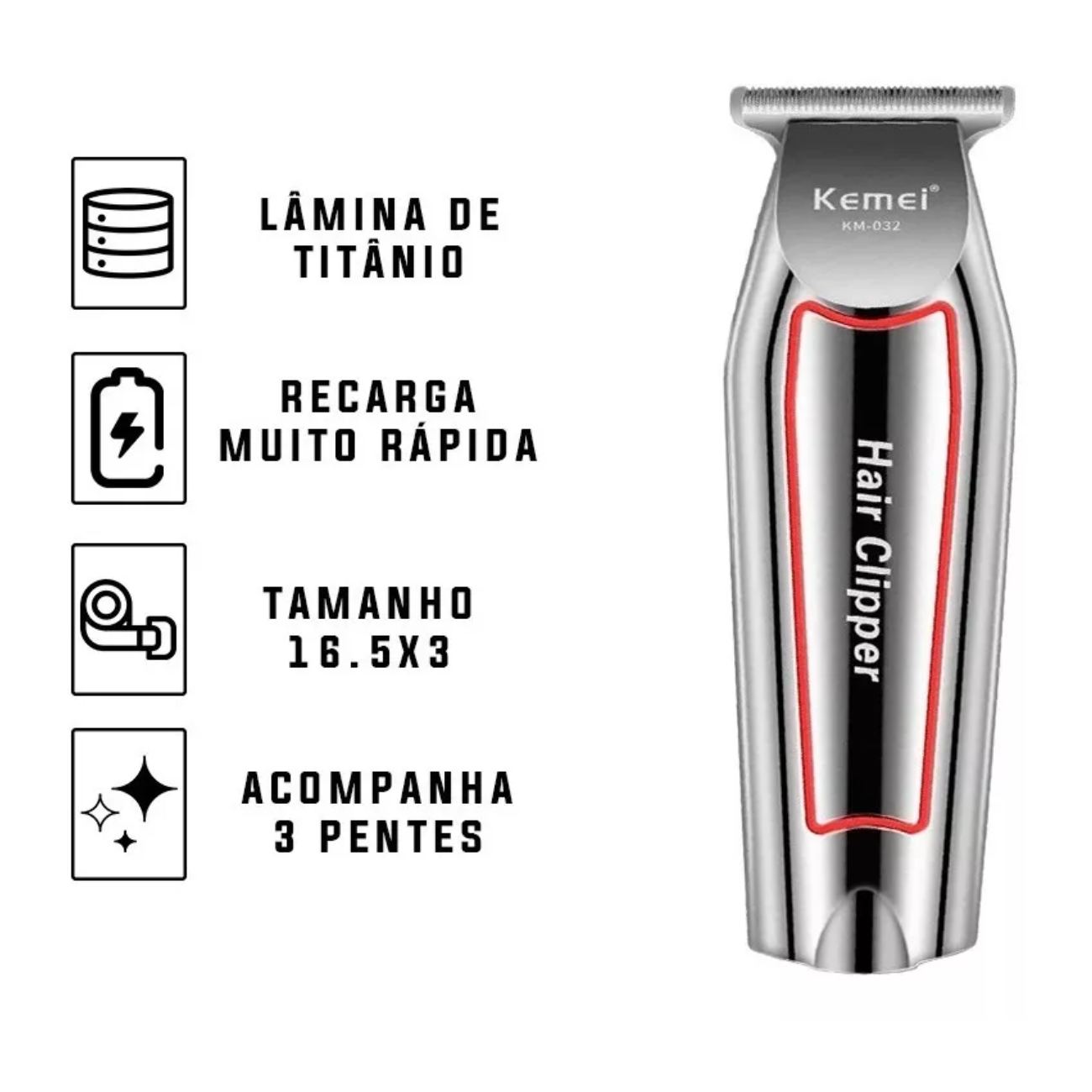 A Máquina Profissional Kemei KM-032 combina tecnologia avançada e design funcional para proporcionar uma experiência de corte superior. Ideal para profissionais exigentes e usuários domésticos que buscam qualidade e precisão em cada corte. Adquira a sua Kemei KM-032 e eleve o nível do seu cuidado pessoal!